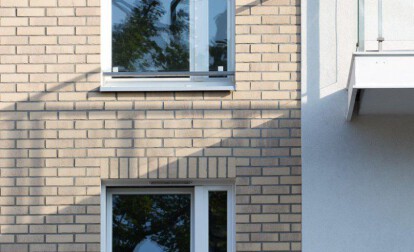 R732 to płytka w kolrze beżowym, gdzieniegdzie przyprószona szarym nalotem. Elewacja wykonane z płytki Vascu Crema Toccata tworzą niezwykły efekt kolorystyczny starej cegły pokrytej patyną.